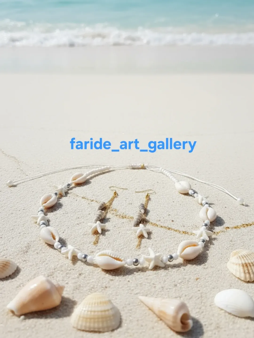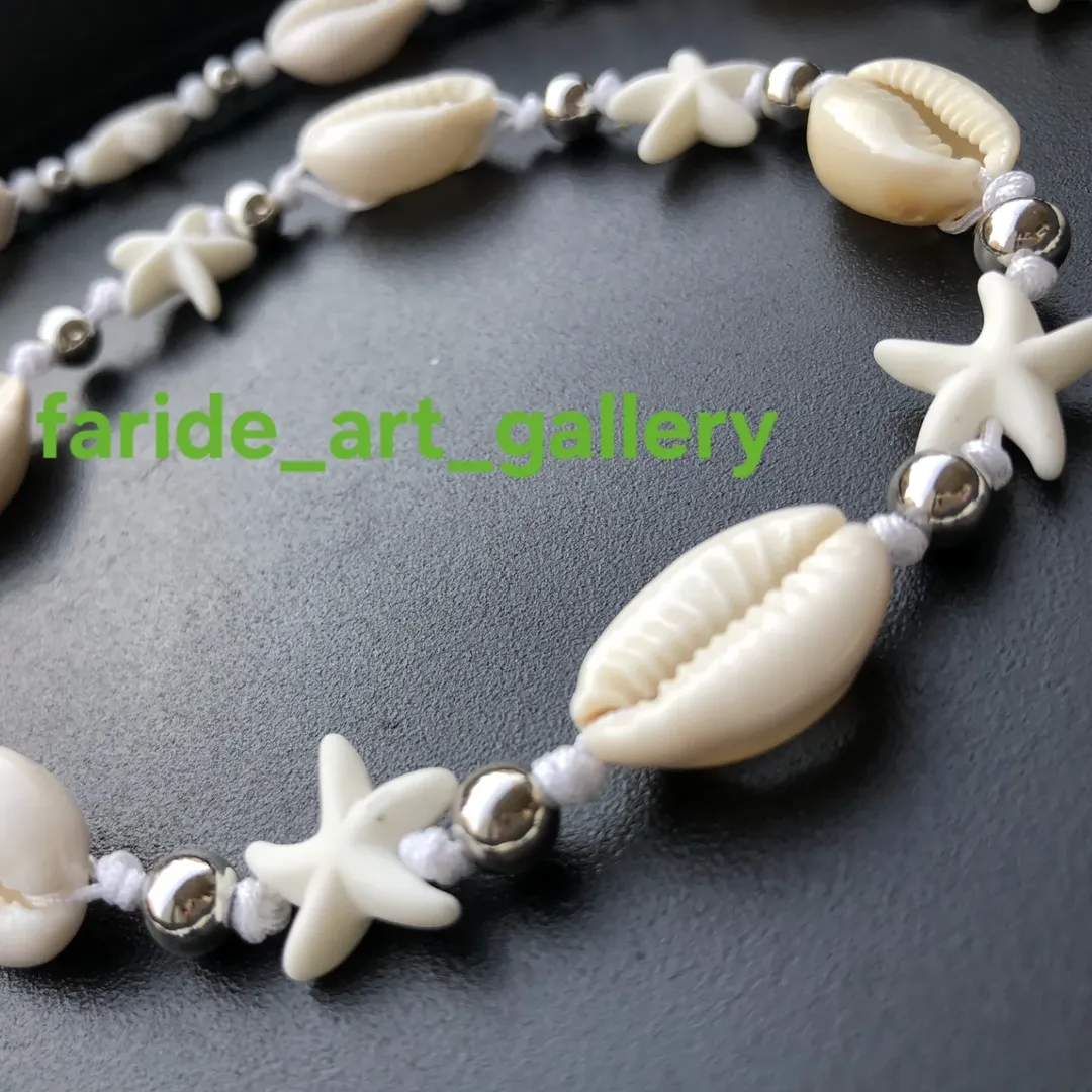 چوکر و گوشواره صدفی با منجوق و مهره استیل و نخ ساخته شده