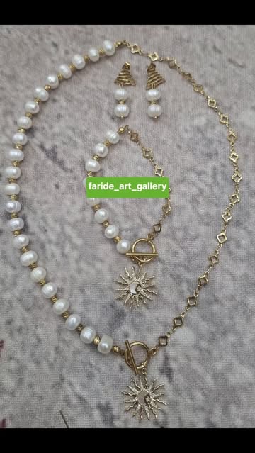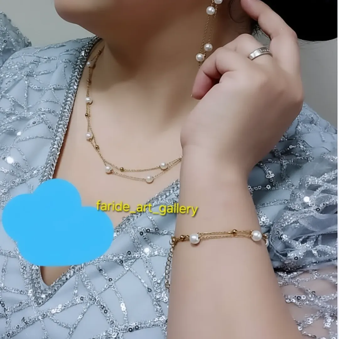 نیم ست مرواریدی گوشواره گردنبند و دستبند مرواریدی و استیل ضد زنگ