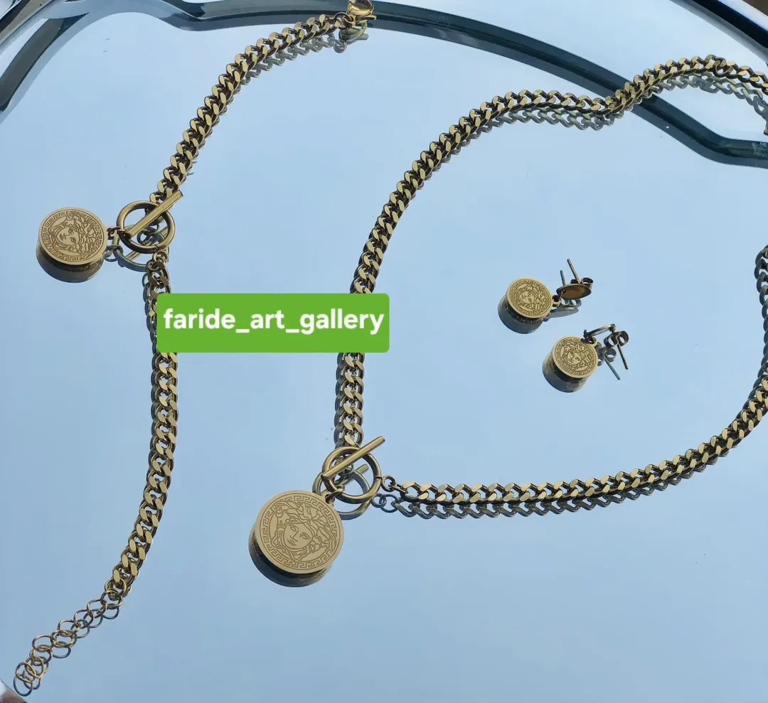 نیم ست گردنبند گوشواره و دستبند استیل و مرواریدی