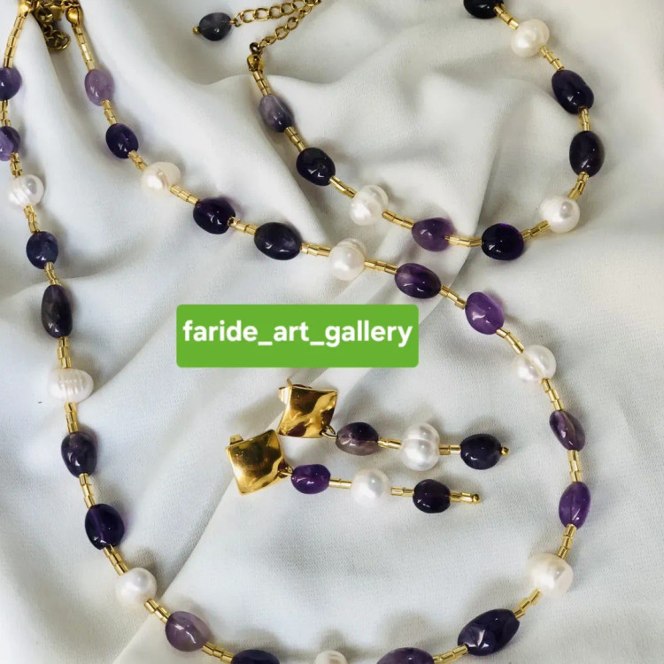 یه کار جذاب و فوق العاده شیک با خواص درمانی. نمونه این کار با شما عزیزان قابل اجرا میباشد. #مروارید_پرورشی#منجوق#ملیله_شکسته#ست_ماه_تولد#نیم_ست_سنگ